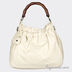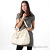 Сумка песочного цвета с деревянной ручкой и возможностью прикрепления наплечного ремня. Ручка крепится к сумке при помощи металлических колец. К ручке привязан декоративный кармашек и кожаный логотип компании. На лицевой стороне сумки располагается большой карман на магнитном замке. На другой сторону - небольшой карман на молнии. Сама модель также имеет застежку-молнию. Внутри один карман на молнии, один карман для мобильного, карман для документов. Тканевый подклад.