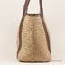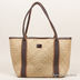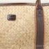 Стильная женская сумка из соломки. Стенки изделия твердые. Передняя часть сумки декорирована нашивкой в виде логотипа бренда. Основное отделение застегивается на молнию. Внутри два открытых кармашка и один прорезной карман на молнии. Подкладка текстиль. Ручки средней длины позволяют носить сумку на плече. Цвет фурнитуры - серебро, ножки отсутствуют. Дно жесткое, формованное.