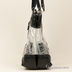 Оригинальная женская сумка из плотного полиэтилена гладкой фактуры. Стенки изделия мягкие. Передняя часть сумки декорирована брелоком на пряжке. Основное отделение застегивается на магнитную кнопку. Внутри один карман на молнии. Подкладка отсутствует. Ручки средней длины позволяют носить сумку на плече. Цвет фурнитуры - серебро, ножки отсутствуют. Дно средней жесткости, формованное.
