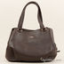 Сумка из натуральной кожи с оригинальной двойной молнией. Модель имеет одно основное отделение на молнии и два боковых на кнопках. Внутри - два открытых кармана и отделение на молнии. Ручки средней длины позволяют носить изделие на плече. Дно формованное. Металлические ножки.