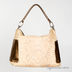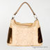 Стильная сумка оригинальной текстуры из натуральной кожи с выделкой под змею. По бокам вставки из кожи золотистого цвета. Основное отделение застегивается на молнию, внутри один большой отдел + внутренний карман на молнии. Ручки короткие бронзового цвета. Ножек нет. Подкладка светлая.