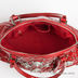 Интересная модель женской сумки на двух ручках украшена рисунком из ромбов и серебрянными цветами, подойдет для современной модной девушки. Сумка выполнена из натуральной кожи красного цвета. Внутри одно отделение, в котором кармашек на молнии, кармашек для мобильного телефона и открытый кармашек. Сумка закрывается на общую пластиковую молнию. Ножек на дне нет. Цвет фурнитуры - блестящее серебро. Модель вмещает формат А4. Пустая сумка хорошо держит форму. Высота ручек позволяет носить сумку на плече. Такая сумка прекрасно подойдет для современной модной девушки.