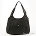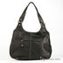 Женская сумка черного цвета из натуральной кожи гладкой фактуры. Сумка имеет мягкие стенки. Два боковых кармана на молнии. Два кармана на металлических молниях. Один карман на молнии на задней стенке. Без наплечного ремня. С двумя ручками, удобными для носки на плече. Внутри переднего отделения кармашек для мобильного телефона и открытый карман. Внутри второго отделения карман на молнии. Мягкое дно, металлические ножки.