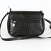 Планшет из натуральной кожи с фактурой под крокодила; длинный плечевой ремень с возможностью регулировки в 5 шагов. Застежка: клапан закрывается на металлическую застежку и основную молнию. Внутри: три отделения, одно из которых на молнии; карман на молнии и два маленьких кармашка.
