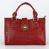 Сумка из натуральной кожи с фактурой под крокодила; хлястик-застежка закрывает основную молнию. Внутри: одно большое отделение, второе маленькое, между ними большой карман-отделение на молнии; три внутренних кармашка, один из которых на молнии. Дно защищено металлическими ножками.