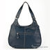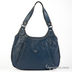 Женская сумка синего цвета из натуральной кожи гладкой фактуры. Сумка имеет мягкие стенки. Два боковых кармана на молнии. Два кармана на металлических молниях. Один карман на молнии на задней стенке. Без наплечного ремня. С двумя ручками, удобными для носки на плече. Внутри переднего отделения кармашек для мобильного телефона и открытый карман. Внутри второго отделения карман на молнии. Мягкое дно, металлические ножки.