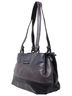 Классическая женская комбинированная сумка из экокожи с синей, коричневой и черной вставками. Сумка имеет три отделения на молнии. Внутри находятся три кармана. Сзади сумки также есть карман на молнии. Высота ручек 30 см. Сумка прекрасно дополнит любой образ и гардероб. Размер 30х10,5х22 см.