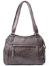 Классическая коричневая женская сумка из экокожи . Сумка имеет одно большое отделение на молнии, которое внутри делится на два. Внутри расположенно четыре кармана. Сзади и спереди сумки также есть карманы на молнии. Длина ручек у сумки 29,5 см. Аксессуар прекрасно дополнит любой образ и гардероб.