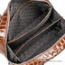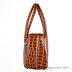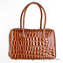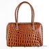 Сумка из глянцевой кожи под крокодила. На средних ручках, три отделения, молния с брелоками.