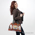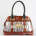 Изящная женская сумка. Стенки изделия плотные. Основное отделение застегивается на металлическую молнию. Внутри два открытых кармашка и один прорезной карман на молнии. Подкладка - текстиль. Ручки средней длины позволяют носить сумку на плече. Цвет фурнитуры - золотистый, пять металлических ножек. Дно формованное. Сумка декорирована оригинальными пряжками с кристаллами и прострочкой.