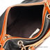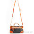 Сумка выполнена из гладкой кожи с контрастными вставками.