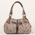 Превосходная женская сумка из текстиля с элементами из натуральной кожи. Три отделения, два по бокам на магнитной кнопке, и одно основное отделение на молнии, внутри один прорезной кармашек на молнии, подкладка - текстиль. Дно формованное, цвет фурнитуры - серебряный.