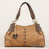 Роскошная женская сумка из натуральной кожи. Три отделения, два боковых на магнитной кнопке и основное отделение застегивается на молнию, внутри один кармашек застегивается на молнию, подкладка - текстиль, ручки средней длины позволяют носить сумку на плече, дно формованное. Цвет фурнитуры - золотой.