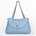 Основное отделение застегивается на клапан с оригинальным замком. Внутри один небольшой карман на молнии для документов. Подкладка светлая. Сумку можно носить как на плече, так и в руках, за счет регулируемой ручки. Ручка декорирована цепочкой. В комплект входит наплечный съемный ремень. Цвет фурнитуры - золото.