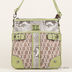 Изящная сумка из текстиля с элементами из натуральной кожи выделки под рептилию. Основное отделение застегивается на молнию. Внутри текстильная подкладка, прорезной кармашек на молнии. Небольшая ручка позволяет носить сумку на плече, в комплекте съемный ремешок. Оригинальная нашивка с металлической эмблемой бренда придает особого шарма изделию, небольшие ремешки в качестве отделки, один прорезной кармашек на молнии с задней стороны. Дно складывается вдвое, цвет фурнитуры - серебряный.