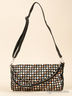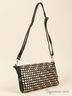 Небольшая женская сумка из искусственной переплетеной кожи. Стенки изделия мягкие. Основное отделение застегивается на металлическую молнию и клапан с магнитной кнопкой. Внутри два открытых кармашка и один прорезной карман на молнии. Подкладка - текстиль. Съемный плечевой ремень и цепочка. Цвет фурнитуры - серебристый. Сумка не вмещает формат А4.