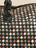 Вместительная женская сумка из искусственной переплетеной кожи. Стенки изделия мягкие. Основное отделение застегивается на металлическую молнию. Внутри два открытых кармашка и один прорезной карман на молнии. Подкладка - текстиль. Две небольшие ручки, в комплекте съемный плечевой ремень. Цвет фурнитуры - серебристый. Дно плотное, формованное, с четырьмя ножками. Сумка свободно вмещает формат А4.