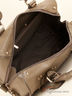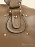 Стильная женская сумка из натуральной кожи. Стенки изделия плотные. Основное отделение застегивается на молнию. Внутри два открытых кармашка и один прорезной карман на молнии. Внутренняя часть разделена текстильным карманом на молнии. Подкладка - текстиль. Две небольшие ручки, в комплекте съемный плечевой ремень. Цвет фурнитуры - золотистый. Дно плотное, формованное, с четырьмя ножками. Декорирована металлическими клепками, не вмещает формат А4.