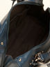 Стильная женская сумка из натуральной кожи. Стенки изделия плотные. Основное отделение застегивается на молнию. Внутри два открытых кармашка и один прорезной карман на молнии. Внутренняя часть разделена текстильным карманом на молнии. Подкладка - текстиль. Две небольшие ручки, в комплекте съемный плечевой ремень. Цвет фурнитуры - золотистый. Дно плотное, формованное, с четырьмя ножками. Декорирована металлическими клепками, не вмещает формат А4.