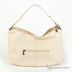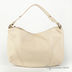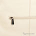 Женская сумка бежевого цвета из натуральной кожи гладкой фактуры. Сумка имеет мягкие стенки. Застежка на две молнии и кнопку. Без наплечного ремня. С одной кожаной ручкой. Два больших отделения на молниях, разделенные карманом на кнопке. Внутри карман на молнии, карман для мобильного телефона, открытый карман. Мягкое дно, без ножек.