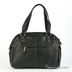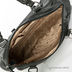 Женская сумка черного цвета из натуральной кожи гладкой фактуры. Сумка имеет мягкие стенки. Застежка на молнию с кожаным поводком. Один передний карман на молнии с кожаным поводком. Один карман на молнии на задней стенке. декорирована металлическими элементами. Без наплечного ремня. С двумя регулируемыми ручками. Внутри одно большое отделение, разделенное средником на молнии. Карман на молнии, карман для мобильного телефона, открытый карман. Мягкое формованное дно, металлические ножки.