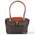 Женская сумка коричневого цвета из текстиля гладкой фактуры. Сумка имеет жесткие стенки. Застежка на молнию и на декоративный клапан с кнопкой. Один карман на передней стенке с молнией. Один карман на молнии на задней стенке. Сумка дополнена боковыми кнопками, регулирующими форму изделия. Без наплечного ремня. С двумя жесткими ручками. Внутри одно большое отделение. карман на молнии, карман для мобильного телефона, открытый карман. Формованное твердое дно, без ножек.