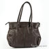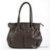Женская сумка коричневого цвета из искусственной кожи гладкой фактуры. Сумка имеет мягкие стенки. Застежка на металлическую молнию с кожаным поводком, пристегивающимся к основанию изделия на металлическую застежку. Без наплечного ремня. С двумя ручками. Внутри одно большое отделение. Карман на молнии, карман для мобильного телефона, открытый карман. Формованное твердое дно.