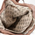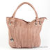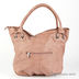 Женская сумка розово-коричневого цвета из искусственной кожи гладкой фактуры. Сумка имеет мягкие стенки. Застежка на металлическую молнию. Сумка декорирована вертикальной прошивкой, создающей эффект складок и металлическими деталями. Без наплечного ремня. С двумя ручками. Внутри одно большое отделение, разделенное средником на молнии. Карман на молнии, карман для мобильного телефона, открытый карман. мягкое дно, без ножек.