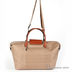 Женская сумка светло-коричневого цвета из текстиля гладкой фактуры. Сумка имеет жесткие стенки. Застежка на молнию и на декоративный клапан с кнопкой. Один карман на передней стенке с молнией. Один карман на молнии на задней стенке. Сумка дополнена боковыми кнопками, регулирующими форму изделия. Наплечный ремень отстегивается, регулируется по длине. С двумя ручками. Внутри одно большое отделение. карман на молнии, карман для мобильного телефона, открытый карман. Формованное твердое дно, без ножек.