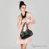 Симпатичная сумка с тремя молниями сверху и оригинальным декором. Имеется задний карман на молнии.