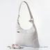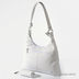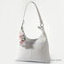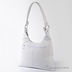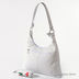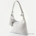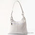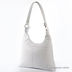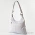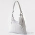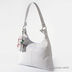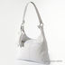 Стильная женская сумочка из белой кожи, прошита белыми нитками. Застежка на молнию. На задней стенке- внутренний кармашек на молнии. Длина ручки - 50 см.. Крепление на кольца.