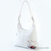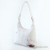 Стильная женская сумочка из белой кожи, прошита белыми нитками. Застежка на молнию. На задней стенке- внутренний кармашек на молнии. Длина ручки - 50 см.. Крепление на кольца. Ручная роспись.