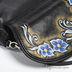 Элегантная сумочка-кошелек на клапане. Крепление - металлическая кнопка. Передняя часть сумочки выполнена их замши. Все остальные детали- гладкая кожа. Внутренний двойной кармашек. Подкладка шелковая, светло-серая. Длина ручки- 100 см. На клапане сумочки-ручная роспись повышенной износостойкости - синие цветы.