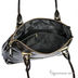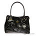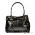 Eleganzza выполнена из лакированной кожи коричневого цвета. Внутри - два отделения, разделенные средником на молнии. В одном имеется карман на молнии, в другом - карман для мобильного телефона и открытый карман. На задней стенке снаружи - маленький карман на молнии. На передней стенке - два кармана на магнитных кнопках. Цвет фурнитуры - блестящее золото. Высота ручек - 25 см.
