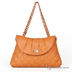 Основное отделение застегивается на клапан с оригинальным замком. Внутри один небольшой карман на молнии для документов. Подкладка светлая. Сумку можно носить как на плече, так и в руках, за счет регулируемой ручки. Ручка декорирована цепочкой. В комплект входит наплечный съемный ремень. Цвет фурнитуры - золото.