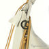 Вместительная сумка в форме банана с интересной ручкой. С лицевой стороны вертикальный карман на молнии. Основное отделение закрывается на молнию и содержит карманы разного типа. Подкладка - бежевый хлопок, фурнитура - серебро.