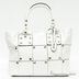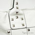 Маленькая стильная сумка с лицевой стороны декорированная металлическими клепками. Основное отделение закрывается на молнию и содержит разного типа карманы. Подкладка голубой нейлон, фурнитура серебро. Маленькие жесткие ручки.