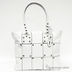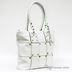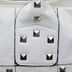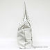 Стильная сумка с лицевой стороны декорированная металлическими клепками. Основное отделение закрывается на молнию и содержит разного типа карманы. Подкладка голубой нейлон, фурнитура серебро. Жесткие ручки средней длины.