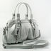 Оригинальная сумка с интересными ручками. С лицевой стороны два вертикальных кармана на молнии, по бокам декоративные ремни. Основное отделение закрывается на молнию и содержит разного типа карманы. Подкладка - бежевый хлопок, фурнитура - серебро. Съемный регулируемый плечевой ремень.