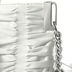 Стильная маленькая сумочка из жатой кожи на одинарном ремешке со вставками из металлических звеньев. Оригинальные бока - крепление ручки. Основное отделение закрывается на молнию и содержит карманы разного типа. Подкладка - бежевый хлопок, фурнитура - серебро.