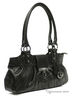 Маленькая сумочка, сзади карман на молнии. Основное отделение закрывается на молнию под клапаном на замочке. Подкладка черный нейлон, фурнитура-серебро. Жесткие ручки на кольцах средней длины.