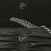 Интересная сумочка из жатой кожи на одинарном металлическом ремешке. Основное отделение закрывается на клапан на кнопке и содержит карманы разного типа. Подкладка - серый хлопок, фурнитура - серебро.
