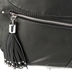 Дамская сумка из натуральной кожи черного цвета. Основное отделение под клапаном на магнитах содержит карманы разного типа. С лицевой и задней стороны карман на молнии, так же с лицевой стороны небольшая декоративная кисть. Подкладка - серый хлопок, фурнитура - серебро. Средней длинны на цепочке ручка.