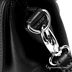 Строгая сумка - маленький портфельчик из натуральной кожи черного цвета. Основное отделение под клапаном на замке разделено на две части разделением с молнией, содержит карманы разного типа. Подкладка - серый нейлон, фурнитура - серебро. Короткая жесткая ручка и съемный регулируемый плечевой ремень.