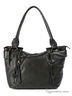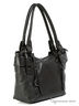 Дамская сумка с одним отделением на молнии. Внутри сумки отделение на молнии, разделяющее ее на две части. С лицевой стороны карманы на молнии. Декоративный элемент в виде отворотов с лицевой и задней стороны. Подкладка серый хлопок, фурнитура - черный антик. Ручки жесткие средней длинны. Дно мягкое, держит форму.