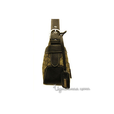 Небольшая сумочка "бананообразной" формы с карманом на молнии с лицевой стороны и основным отделением на молнии, содержащим карманы разного типа. Подкладка - коричневый нейлон, фурнитура - хром. Жаккардовая ткань с фирменным логотипом марки. Одинарный жесткий ремешок средней длины, жесткое дно, форма. Контрастная бежевая строчка и элементы из коричневой экокожи.