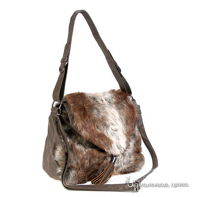 Небольшая сумка из экокожи и искусственного меха. Основное отделение на молнии с карманами разного типа под клапаном на кнопке, разделено на две части разделением с молнией. Декоративные элементы в виде небольшой кисти с лицевой стороны. С задней стороны карман на молнии. Подкладка - коричневый нейлон, фурнитура - черный антик. Средней длинны плечевой ремень, дополнительно регулируемый плечевой ремень.