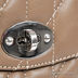 Строгая сумка - стеганный маленький портфельчик из натуральной кожи коричневого цвета. Основное отделение под клапаном на замке, разделено на две части отделением с молнией, содержит карманы разного типа. Подкладка - бежевый хлопок, фурнитура - серебро. Короткая жесткая ручка, съемный регулируемый плечевой ремень.