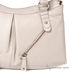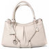 Дамская сумочка, состоящая из одного отделения на молнии, содержащего разного типа карманы, разделяющего кармана на молнии, с лицевой стороны декоративные элементы в виде сжатости по центру и двух косых карманов на молнии по бокам, с задней стороны сжатость по центру. Подкладка бежевый нейлон, фурнитура серебро. Ручки твердые короткие.