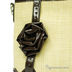 Маленькая сумка, декорирована ремешками и декоративным цветком. Основное отделение закрывается на молнию и содержит разного типа кармашки для аксессуаров. Подкладка - бежевый нейлон, фурнитура - серебро. Плечевой ремень может фиксироваться в двух положениях - одинарный длинный или короткий двойной.